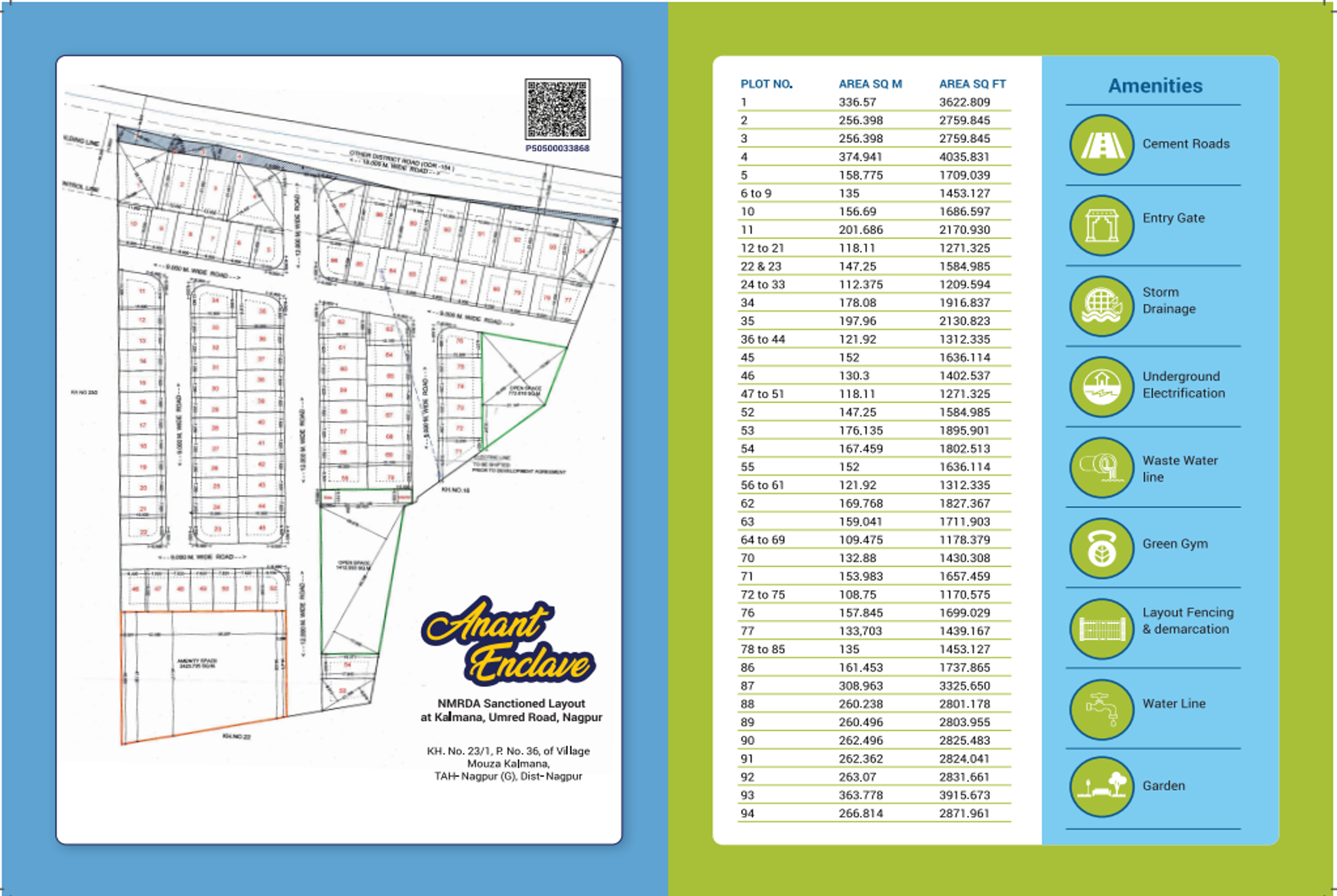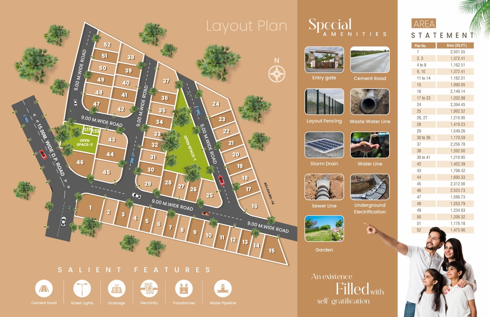 Well-planned residential layout with clearly defined plots, internal roads, and open spaces for comfortable living.